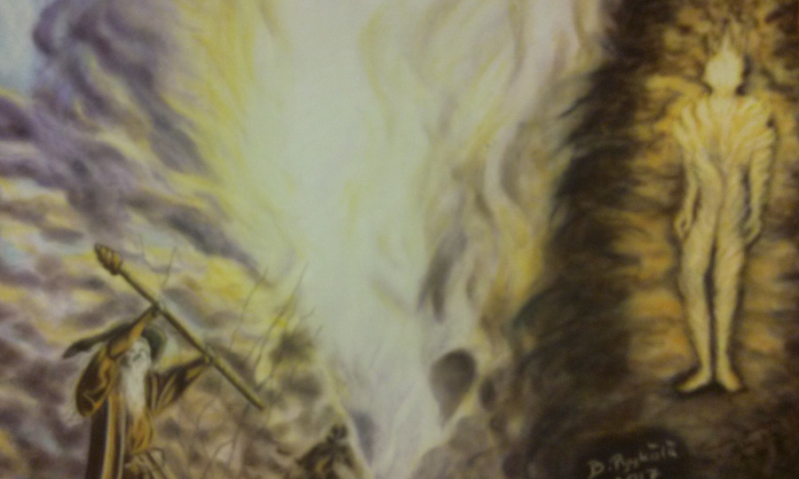 Torrpastell, inspirerad från filmen Hobbit. Tavlans mått 70x50 cm. Inramad. Skapad: 2017